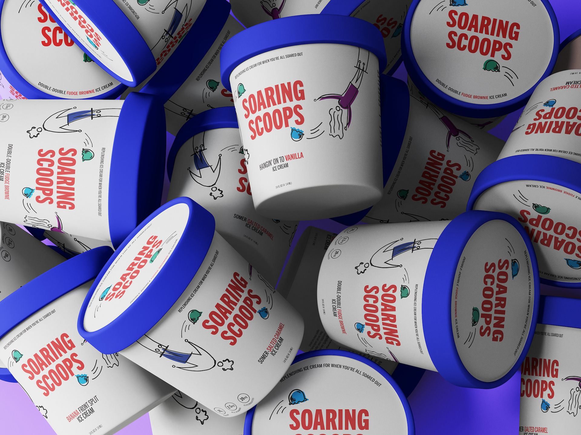 — A playful take on a conceptual branding and packaging project. An exciting, friendly brand of replenishing ice cream for acrobats to help nourish them with all the nutrients they need after a long, tiring show.